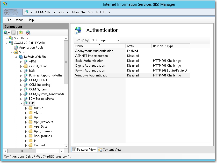 Open IIS Manager and select the ESD virtual directory under Sites in the tree.