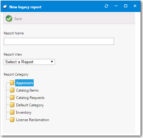On the Report Management > Reporting view, click New Legacy Report. The New Legacy Report dialog box opens.