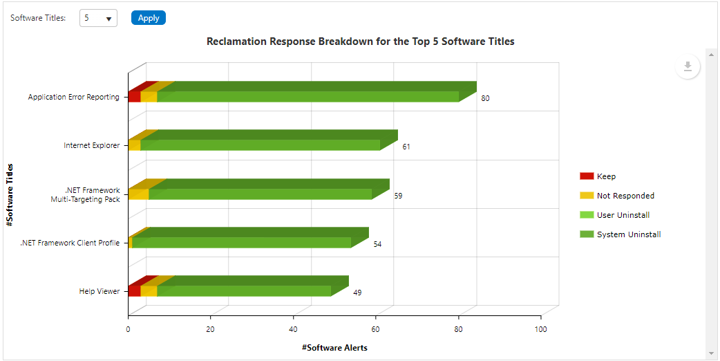 The number of titles displayed in the graph is based upon the number selected in the Software Titles drop-down. Selectable values are 5, 10, 25, 50, 100. The default is 5.