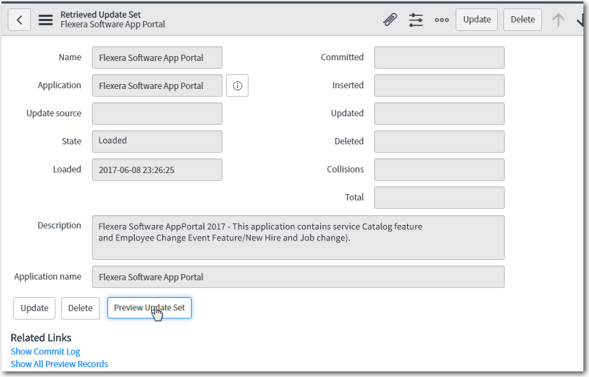 Importing and Configuring the Flexera Software App Portal Update Set in ServiceNow